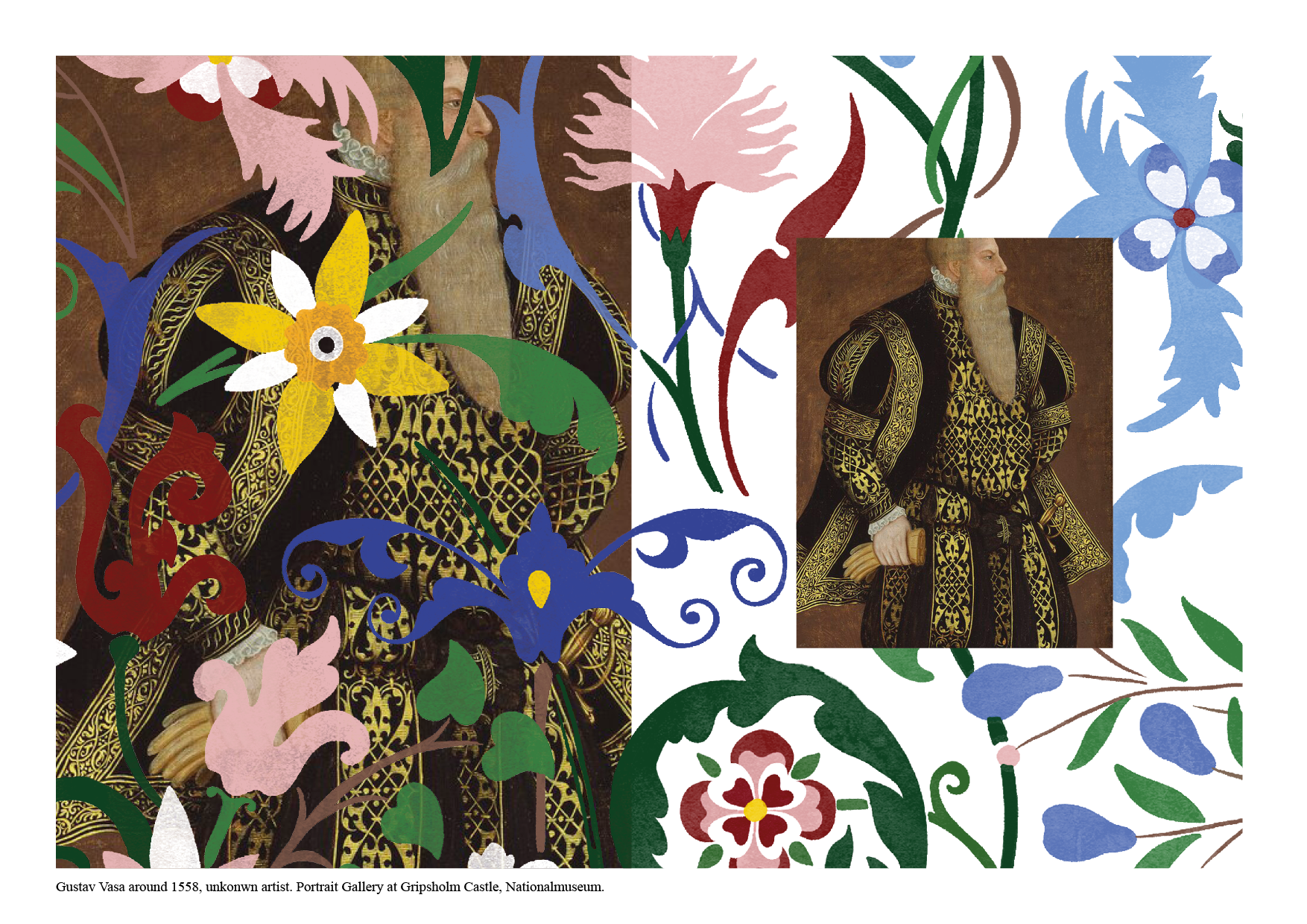 This pattern draws inspiration from Royal Swedish Renaissance artefacts and interiors, reflecting the rulers’ ambition to use stylized ornamentation, shaped by diverse European and Middle Eastern influences, as a visual expression of refinement, exclusivity and cultural legitimacy.