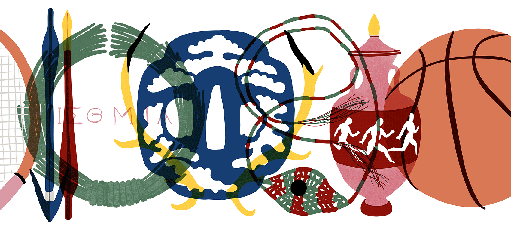 Illustrative concept that explores the history of sports through objects.